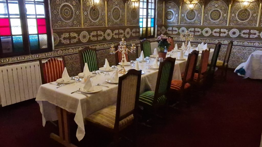 Dans un décor adapté à vos désirs, Palais de Souss vous offre un espace de cocktail pour l’accueil de vos convives, et une salle de réception pour votre soirée et votre dîner. Toute notre équipe sera à votre disposition pour que votre soirée soit inoubliable. Nous vous mettons en relation avec nos partenaires traiteurs qui vous proposent un large choix de spécialités de qualité et certifiées. Votre dîner sera servi en salle, autour de tables rondes de 8 à 10 personnes.